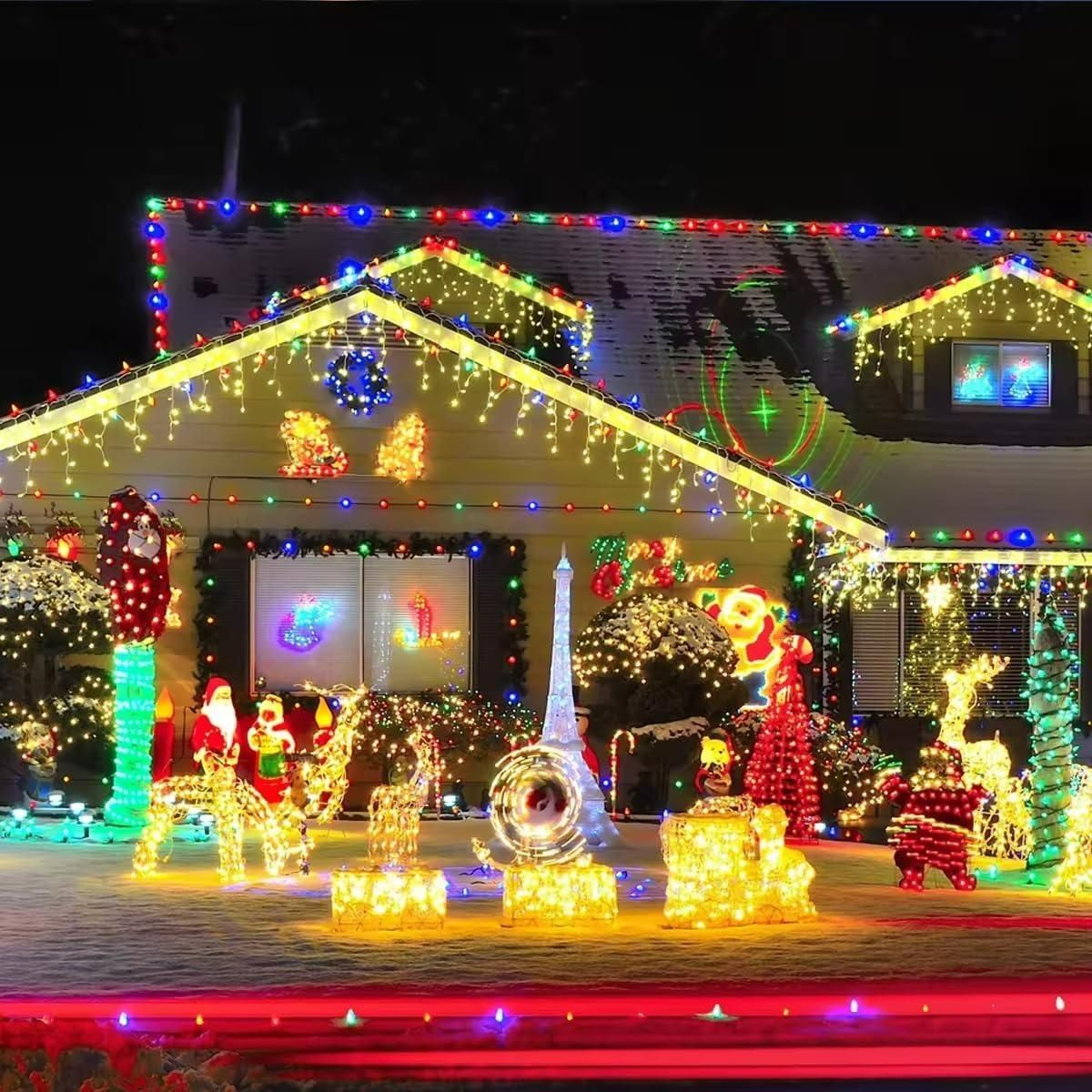 These 100 LED RGB multicolor string lights bring vivid illumination and ambiance to any setting. Their flexible and easy-to-install design makes them perfect for decorating walls, shelves, patios, and more while adding energy-efficient lighting to your space.